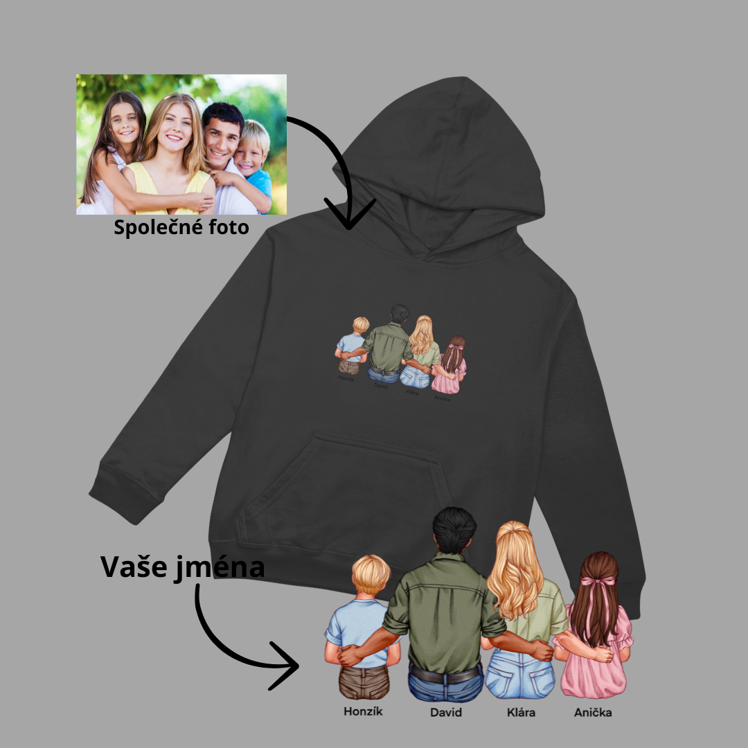 Přejete si mít na mikině své nejbližší, ale nemáte společnou fotku, nebo není dostatečně kvalitní? Mikina RODINA je přesně pro vás!