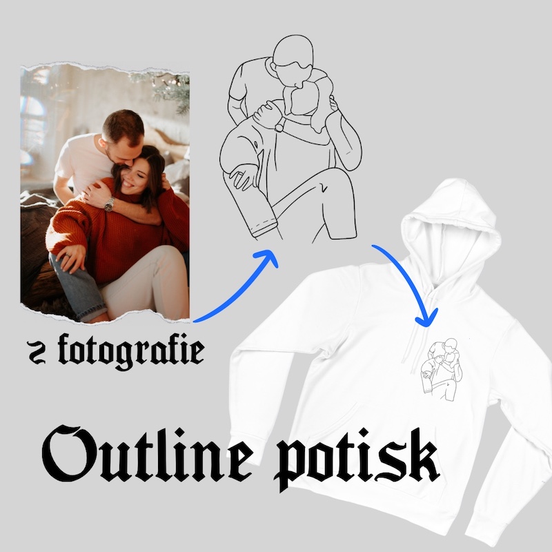 Objednáním obdržíte 1ks mikiny Umísténí potisku: u srdce Vaše fotografie bude překreslema do outline stylu - viz fotografie V košíku po přidání produktu uvidíte kolonku NAHRÁT, krerou využijte pro nahrání fotografie pro překleslení. K překreslení volte prosím : foto rodiny, zvířat aut, věcí a rostli... celý popis