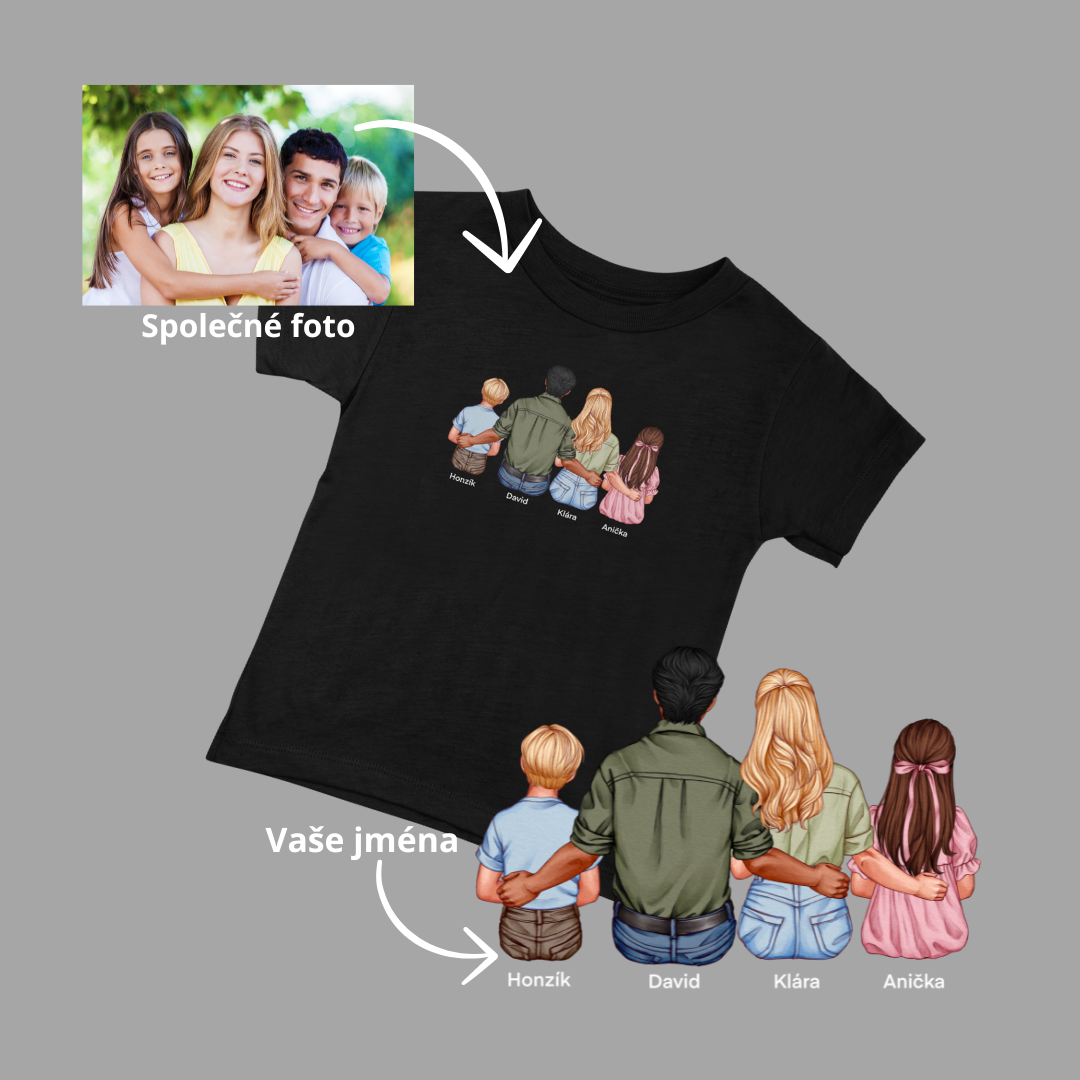 Přejete si mít na tričku své nejbližší, ale nemáte společnou fotku, nebo není dostatečně kvalitní? Tričko RODINA je přesně pro vás!