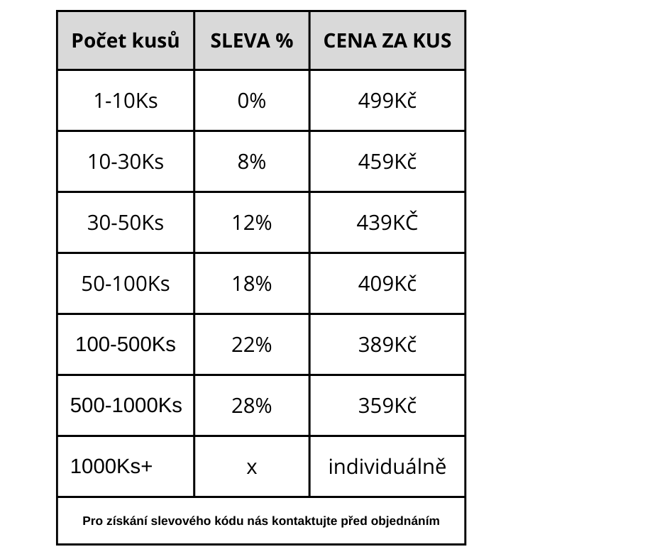 Skvělé pro jednotlivce, firmy i skupinyProdej již od 1ks, možnost množstevní slevy- Kompletní specifikace